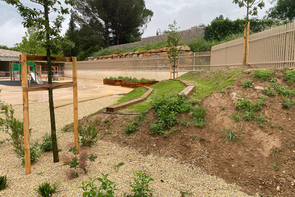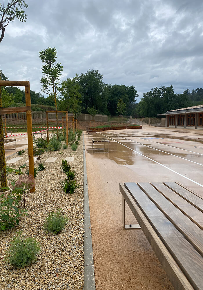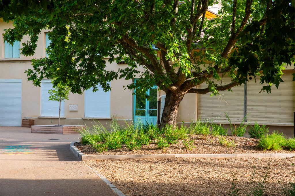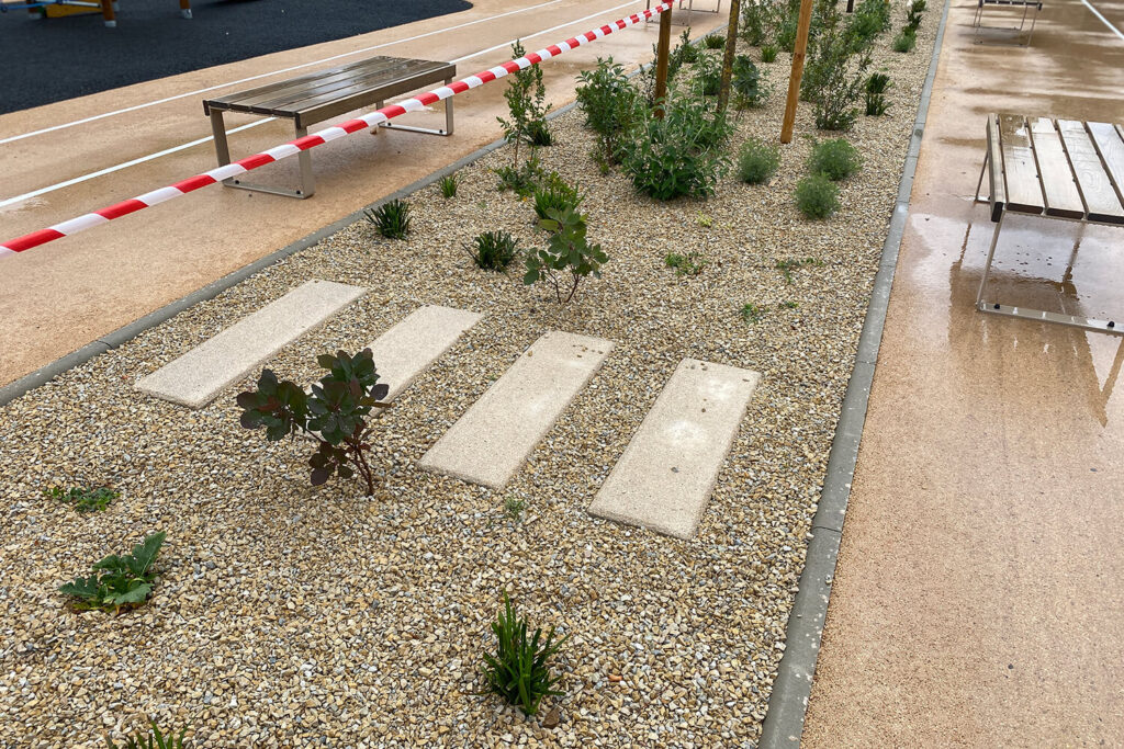 - Désimperméabilisation et végétalisation de la cour d’école.