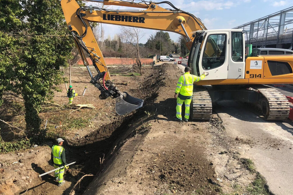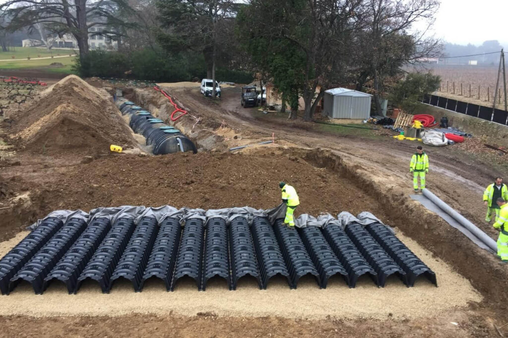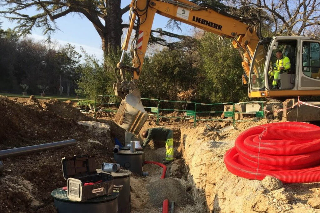 Vauvenargues – Enfouissement de réserves d’eau Vauvenargues – Enfouissement de réserves d’eau Maître d'ouvrage : SARL LA VALENSOLE Date de livraison : 2018 Prestations principales : Enfouissement d’une réserve d’eau de 200 000 litres. Pose de 400 ml de PEHD Ø40. Installation de surpresseurs.