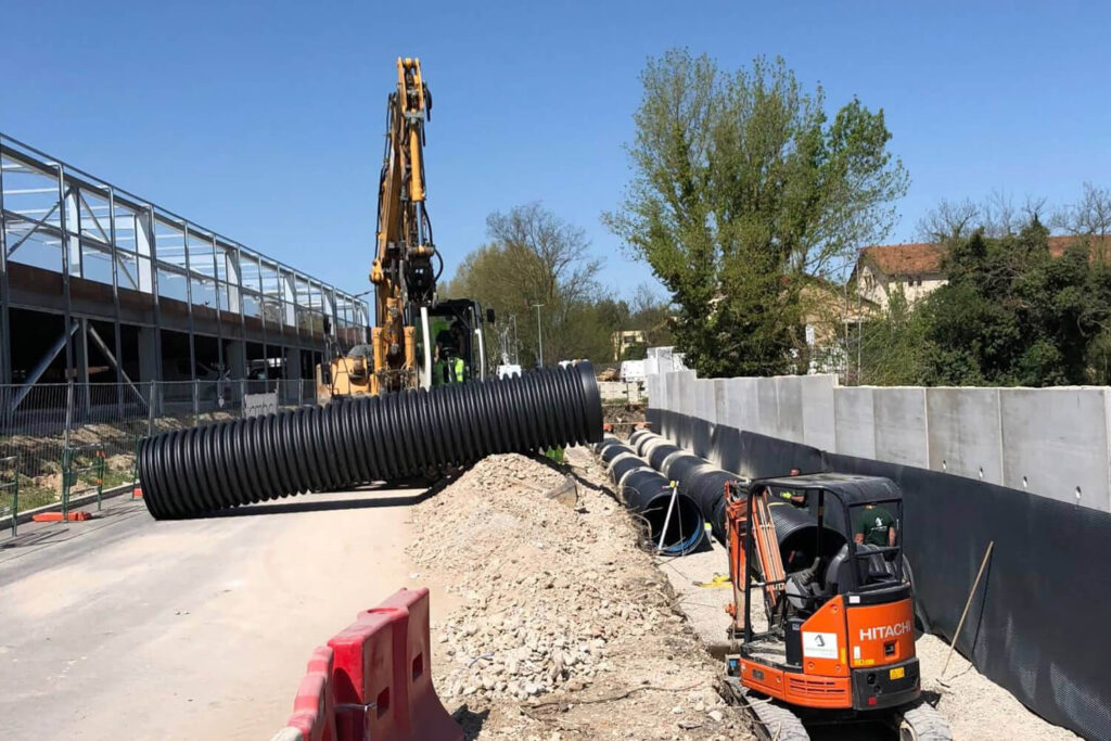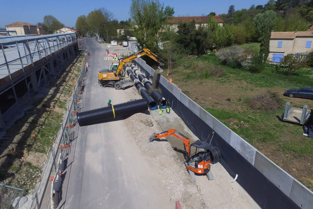 Pertuis – Bassin d’orage Pertuis – Bassin d’orage Maître d'ouvrage : Ville de Pertuis Maître d’œuvre : Mediae Date de livraison : 2018 Prestations principales : Pose de 300 ml de buses annelées N/B Ø 1000. Mise en œuvre de réseaux secs.